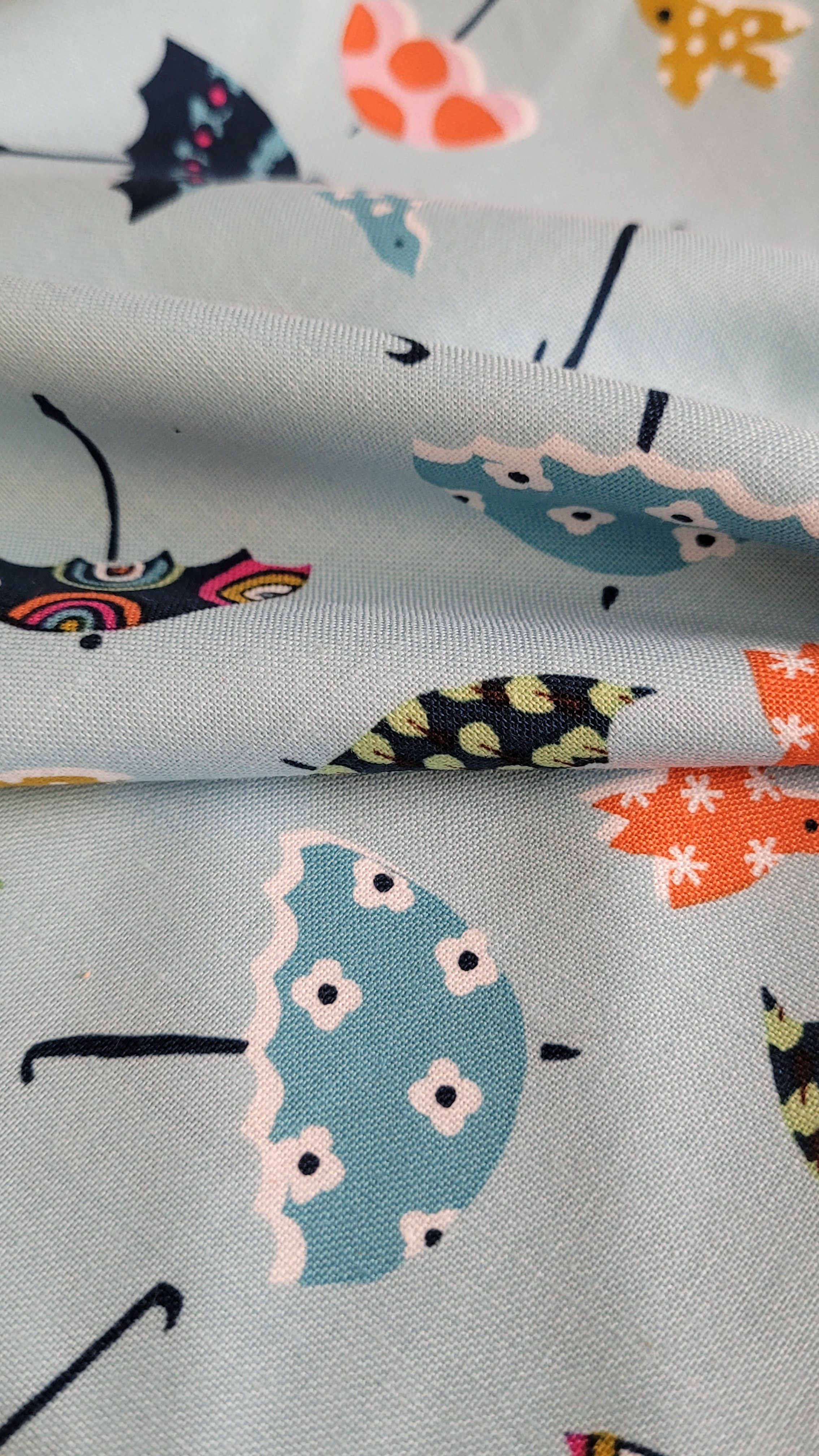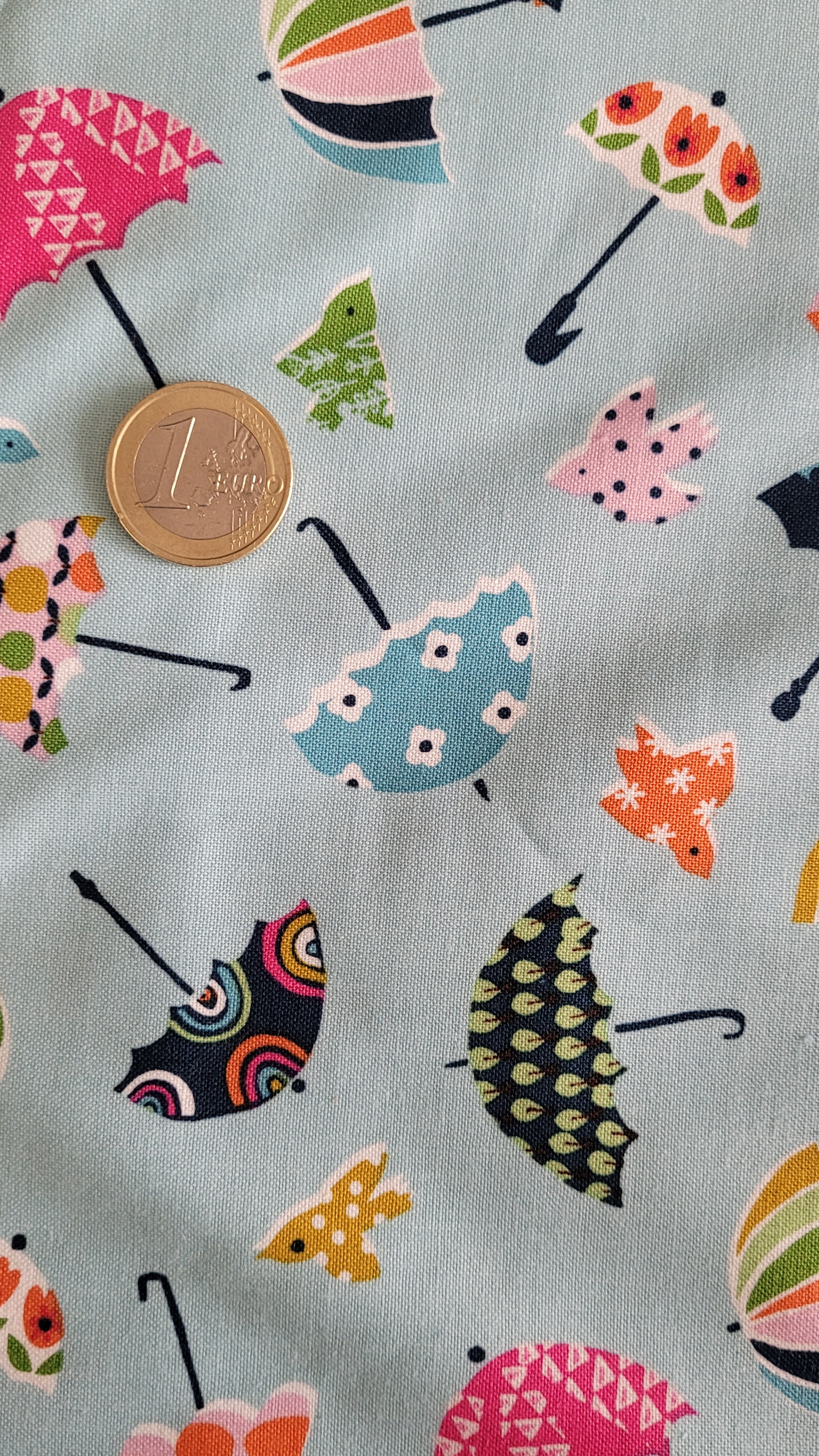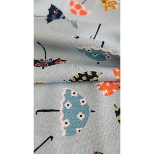 coton bleu clair décor parapluie