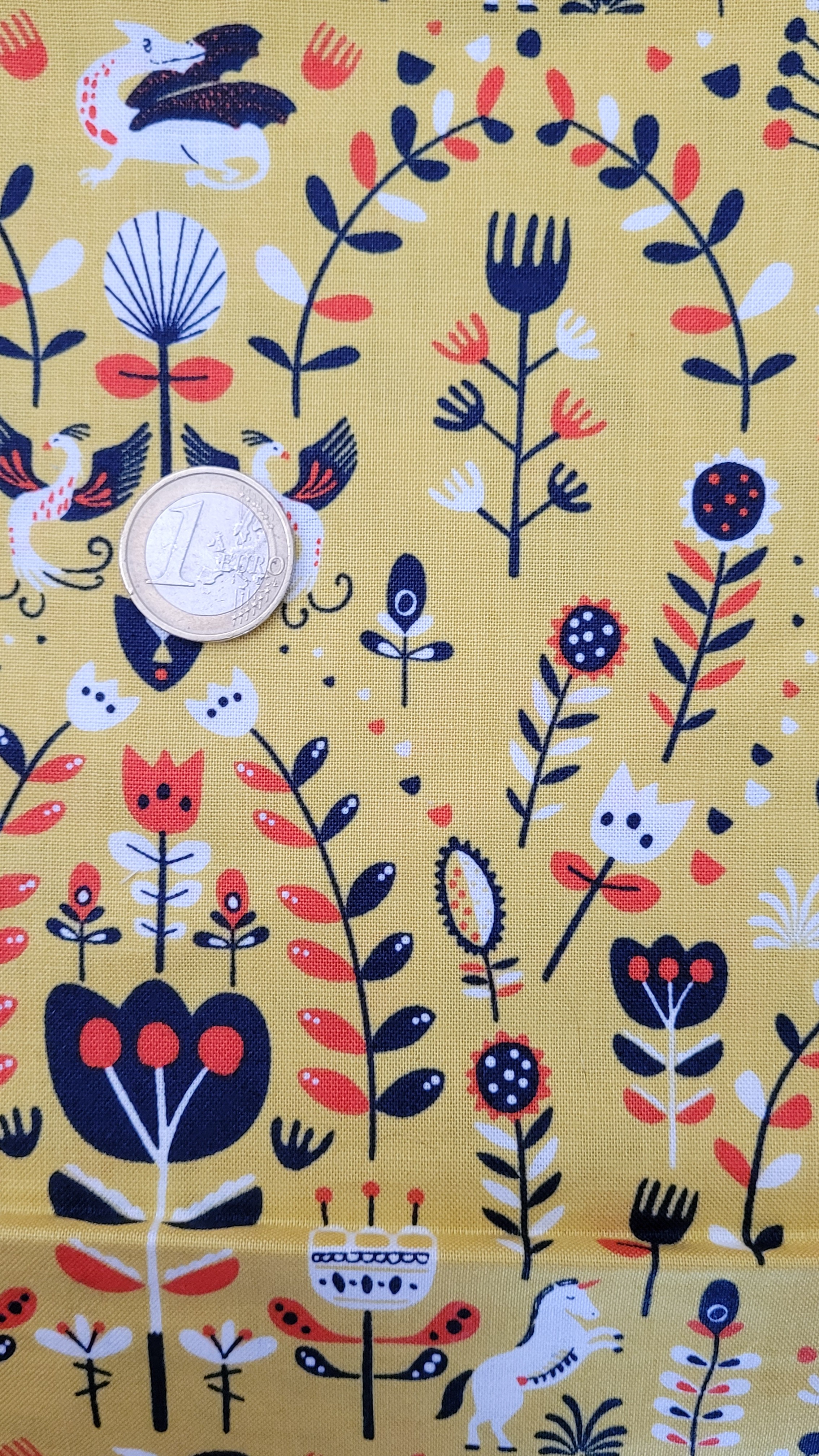 coton jaune avec avec motifs colorés