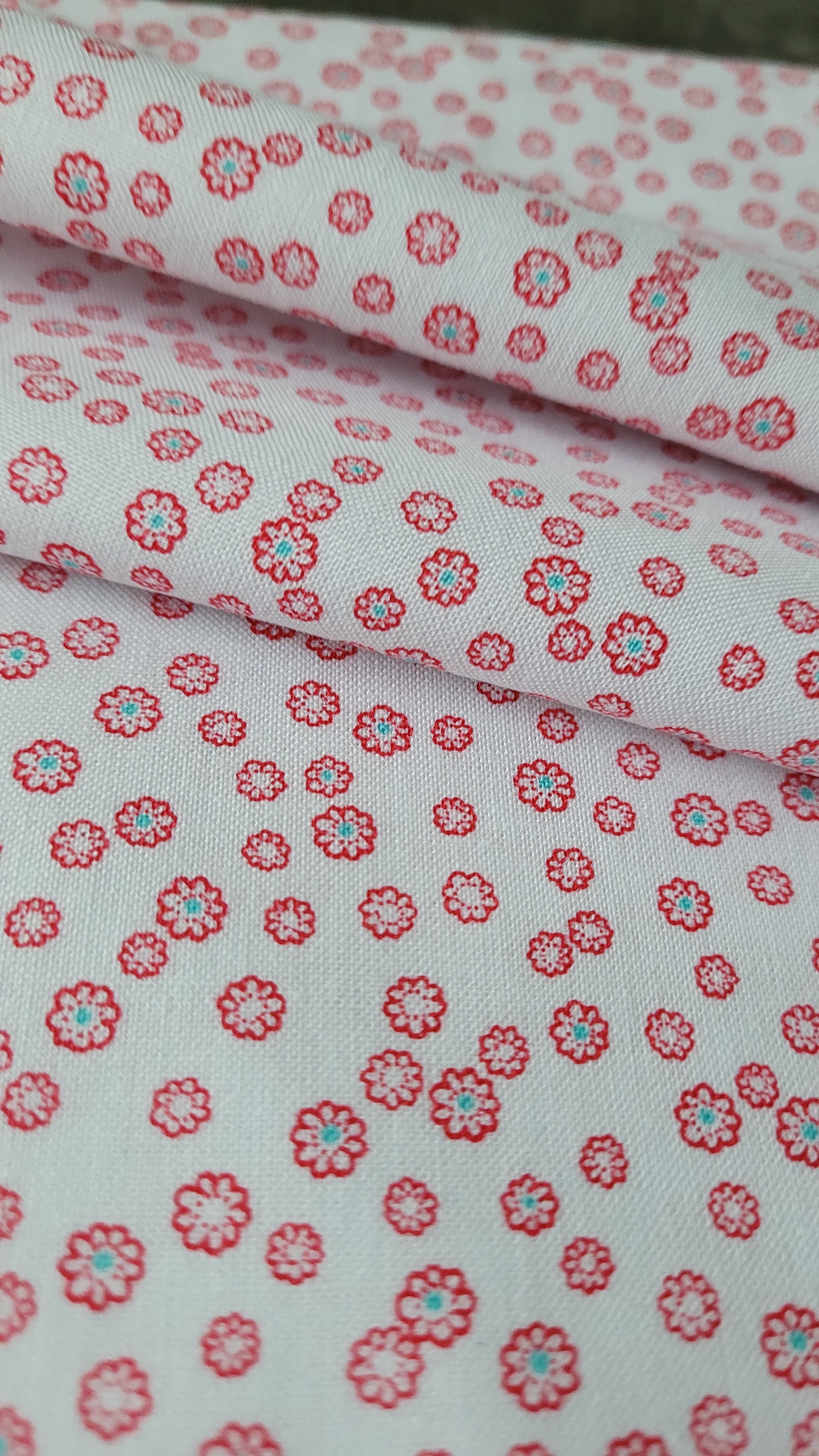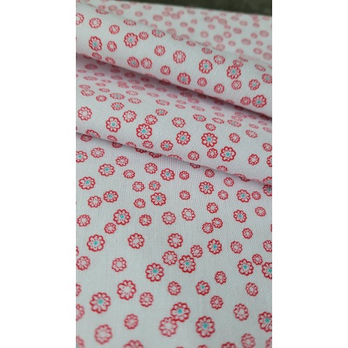 tissu coton blanc avec petites formes rouges