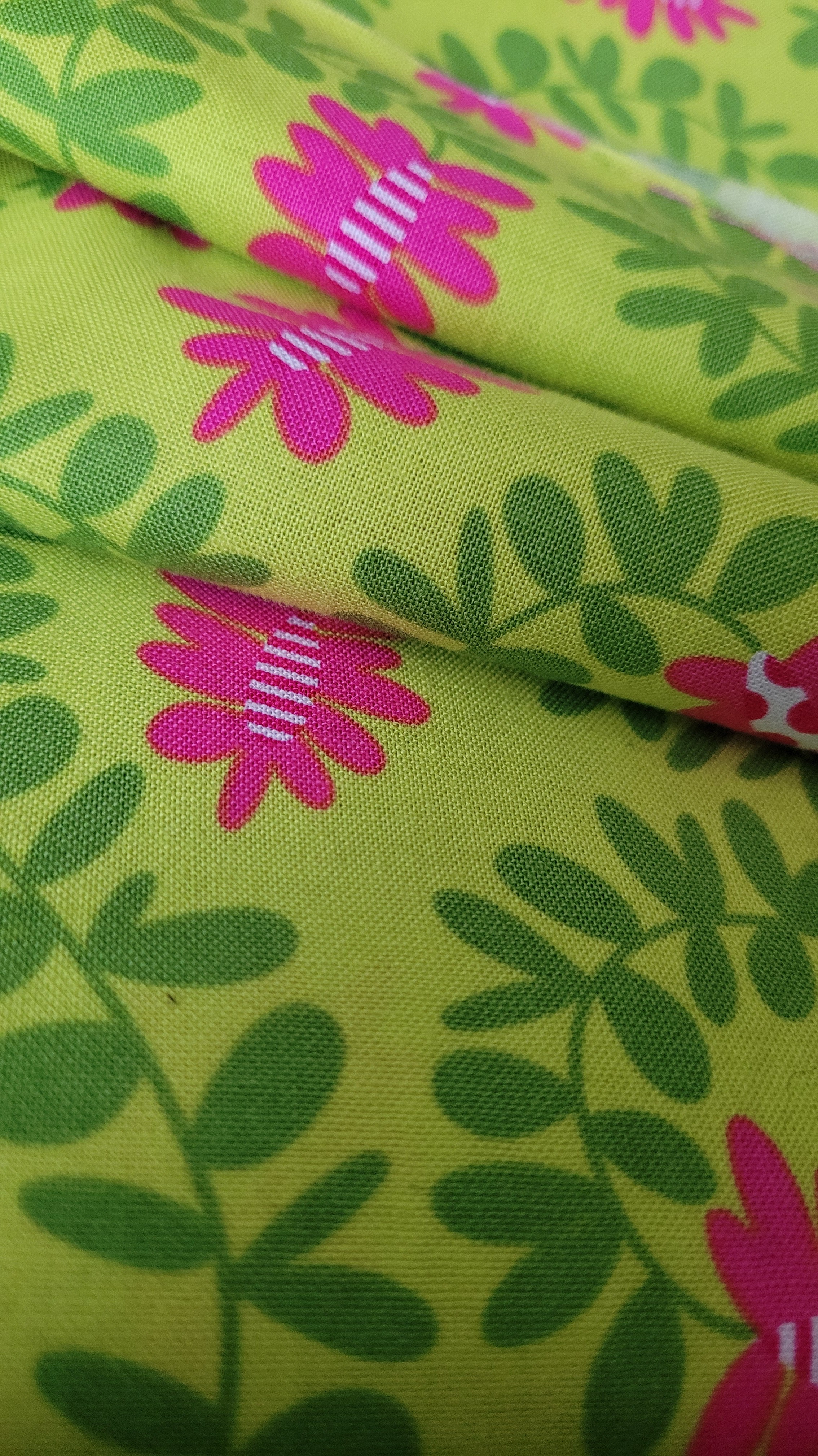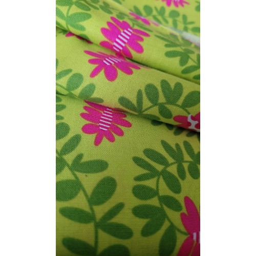 tissu coton vert avec plantes roses