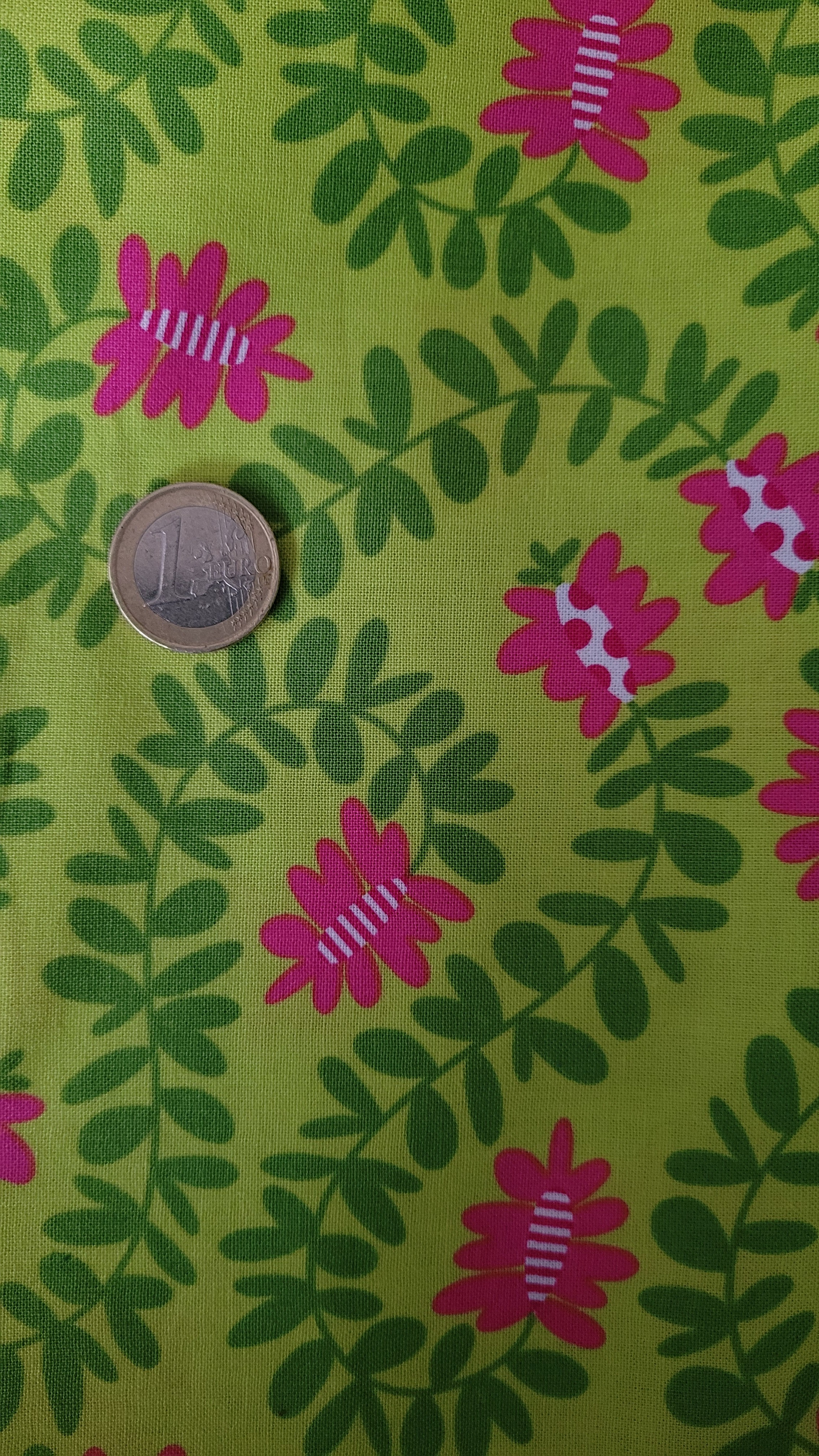 coton vert anis, décor fleuri rose