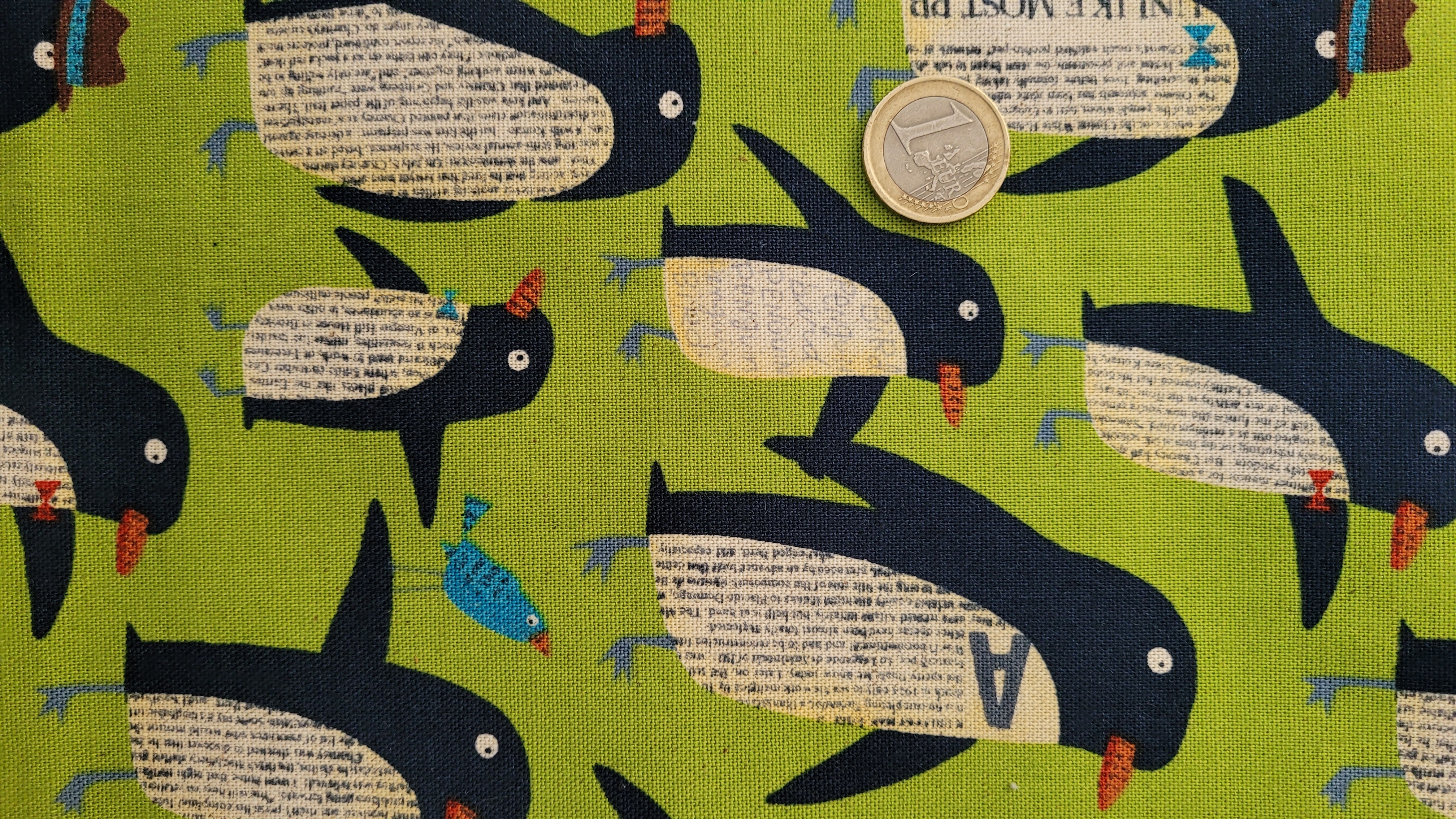 tissu en coton vert avec pingouins